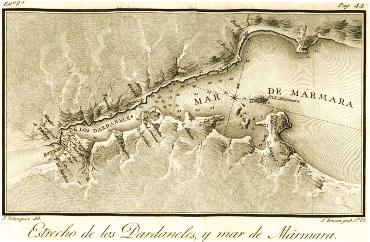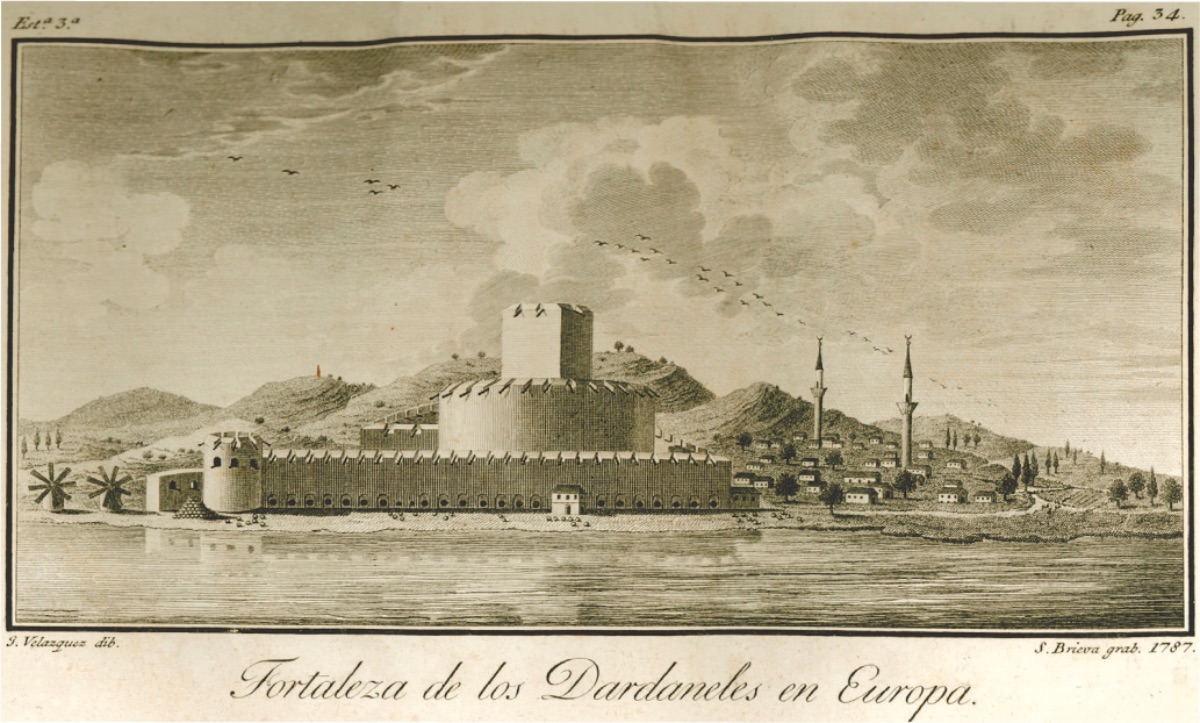 Çanakkale'nin üç mil kadar kuzeyine uzanırsanız orada üçgen biçimli bir alanda eski Abydos kalıntılarına rastlarsanız. Burada bir şehir kurulması için daha elverişli bir mahal bulmak imkânsızdır. Buradan bakıldığında bütün kanalın iki sahilini görebildiğiniz gibi Bozcaada‘yı (Tenedos) kolaylıkla görmeniz mümkündür. Eğer Türkler gerçekten Akdeniz'den gelebilecek düşman filolarının Marmara'ya geçmelerine engel olmak isterlerse, bir topçu bataryasını Nagar mevkiine yerleştirmekten daha kolay yapacakları bir iş yoktur. Zira arazi, yapısı dolayısıyla burada bir dirsek oluşturduğundan dışarıdan gelecek gemiler ister istemez bu noktaya yaklaşmak zorundadırlar. Zaten boğazın bu mevkii diğer kalelerin arasındaki mesafe kadar kısa ve dardır. Çanakkale Boğazı'nın Doğusu (1784, José Moreno)