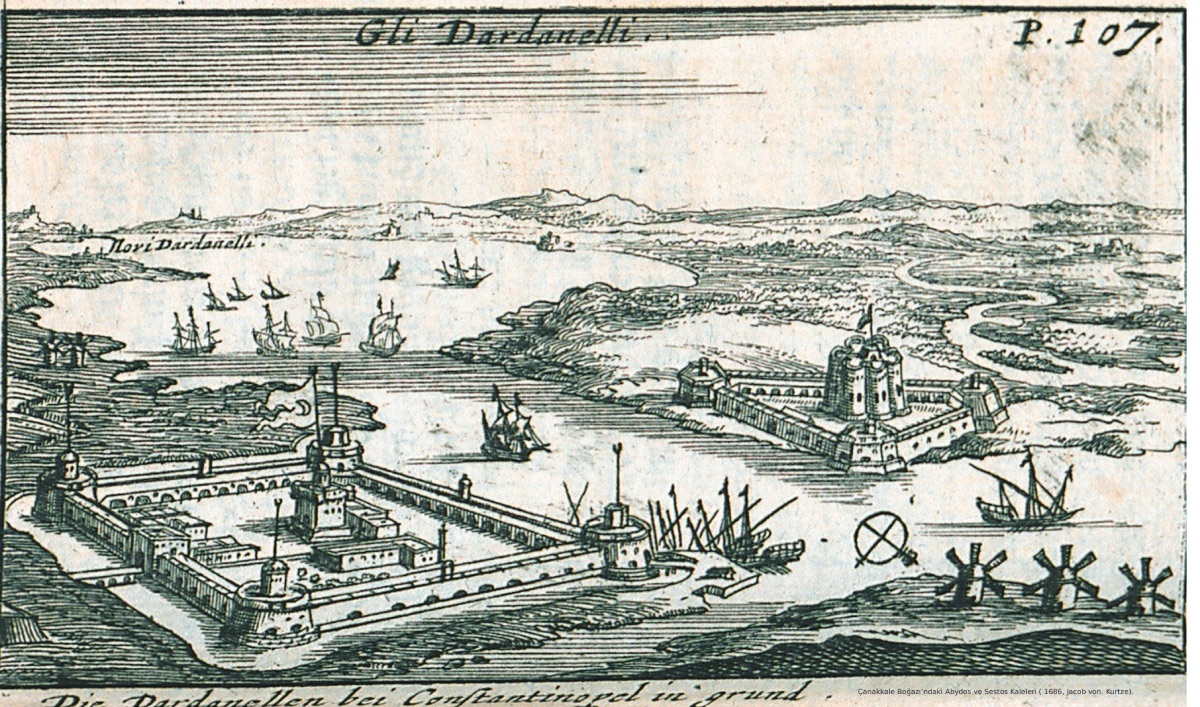 Troas Bölgesi ve İda Dağları (1686, Jacob Enderlin)Çanakkale kenti (Dardanelli)