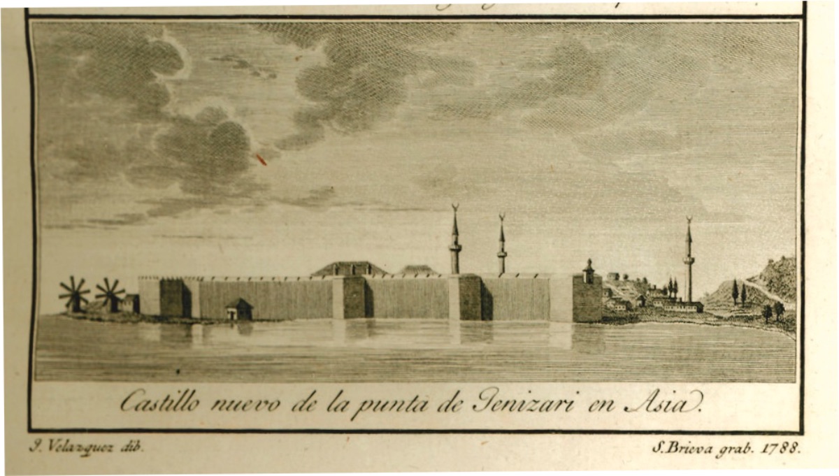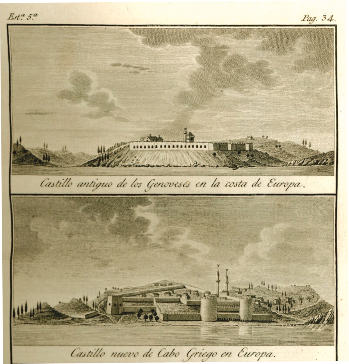 Çanakkale Boğazı'nın (Dardanellen), yani eski Hellespont'un Avrupa yakasındaki ilk kalesine bakıyorum. Bazı seyyahların anlatımlarında abartarak belirtikleri gibi ne giriş o kadar dar, ne de toplar o kadar büyük. Çevresi çok güzel, ama Asya kıyısına doğru çok daha güzel ve boğaz kıyısı boyunca oldukça verimli. Dardanellen'in ikinci kaleleri ise Çanakkale Boğazı'nın (Hellespontus) en dar yerinde kurulmuş. Burada, aşkının kurbanı olan mutsuz Leander'in eski Abydos ve Sestos kentleri yer almakta. Burada Kserkses ordusunu Hellespont üzerine yaptığı köprüden geçirirken, dalgaların köprüyü yıkması nedeniyle boğaza çok öfkelenmiş. Asya tarafındaki kalenin içinde birkaç tane kırık sütün ve Romalı tarzında yuvarlak bir sunak görülmekte. Bu sunak çok büyük ve sağlam yapılmış. Fransız konsolosu burada oturuyor. Aynı zamanda burada çok sayıda Rum yaşıyor; çevre çok güzel ve çok güzel şarap üretiliyor. Türkler tarafından geçilemez olarak kabul edilen kale sadece iki savaş gemisiyle bile alınabilir. Tüm toplar su seviyesiyle aynı yükseklikte. Kırk adım uzunluğunda toplar var ve bazı gülleler yüz elli kilo ağırlığında. Buradan Gelibolu'yu (Gallipolli) gördüm; oldukça büyük bir kent; günümüzde Marmara Denizi ya da Akdeniz olarak adlandırılan Propontis'in kıyılarında yer alıyor. Kentte Türklerden çok Rumlar var. Bizans İmparatorluğu'nun, İstanbul'un (Constantinopol) düşmesinden önce kaybettiği son kent. I. Süleyman 1357 yılında kenti almış. Eskiler burayı Gallipolis olarak adlandırmakta. Karşıdaki Asya kıyısında Türklerin yaşadığı yerleşme Çardak (Chardat) yer almakta. Burada Kserkses'in kendisine şarap yollaması için Themistokles'e verdiği eski Lampsakos yer almakta. Kentte yaşamış usta sofist Anaksimenes, kenti Büyük İskender'in öfkesinden kurtarmıştır. Ayrıntılar için Pausanias'ın 6. kitabı 18. bölümüne bakılabilir. Çevrede Dor tarzında yapılmış, büyük bir olasılıkla bir tapınaktan arta kalmış sütunlar görülmekte."