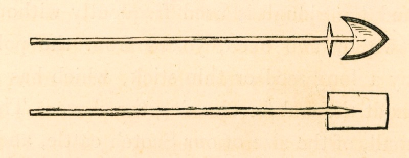 Bugün ülkenin bazı tarım aletlerini inceleme fırsatı buldum; bir tanesi ekinleri harmanlamada ve samanları kesmede kullanılıyor. Yerde duran düzgün kalın bir ahşaptan oluşuyor, diğer küçük bir tanesi ise yukarı yatay bir şekilde bir hayvanın bağlandığı bir parçası var. Bu alet, sert kayalık yüzeye yayılan buğdayların üzerinden geçiyor; tahta yüzeyinin içine sokulmuş çakmaktaşları, taşı bile kesebilecek sertlikte, bu aletin uç kısmına çekmek için inek bağlanıyor.