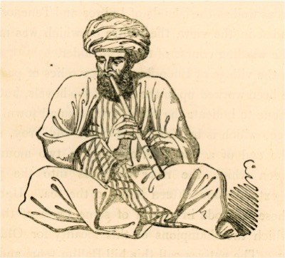 Küçük Asya'da çobanların kullandığı kaval örnekleri British Museum'da olan Atina'da mezarlarda bulunanlara çok benziyor. İki ucundan açık olan bu kavalı, Grek vazolarında resimlerde çobanlar yürürken çalıyor. Bu alet ve lir, eski Greklerin mimari ve heykelde başka hiçbir dönemde ulaşamadığı kusursuz seviyenin, aynı zamanda müzik biliminden anladıkları konusunda yeterli kanıtlardır... Çanakkale Bölgesi'nde Kullanılan Tarım Aletleri (1838, Charles Fellows)-3